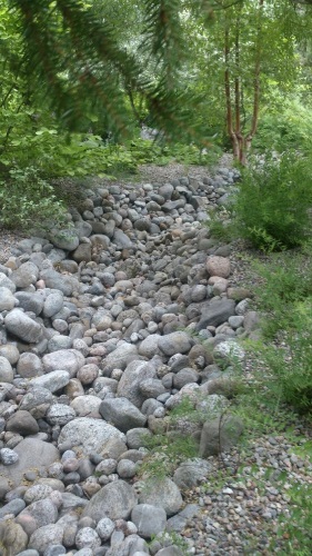 Andra anhalten var Hundsjö, även det inom Gideåområdet, där Marianne Mähler med sin Leif har anordnat en fantastisk trädgård på hennes gamla hemställe vid stranden av sjön. Trädgården bestod av mängder av olika träd, buskar och blommor som inramade trivsamma sittplatser och byggnader som Leif fixat. Det mest ovanliga och iögonfallande var torrbäcken, enbart av runda stenar, som slingrade sig ned genom hela anläggningen. All odling står i sand och gödslas enbart med gräsklipp.