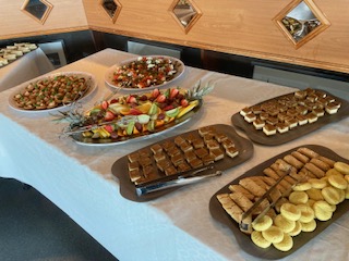 En trivsam träff med avsmakning av ett antal läckra smårätter för 50-talet medlemmar. Musikgruppen Skogsfalke underhöll med lyssnarvänlig musik och trevligt småprat under tiden.