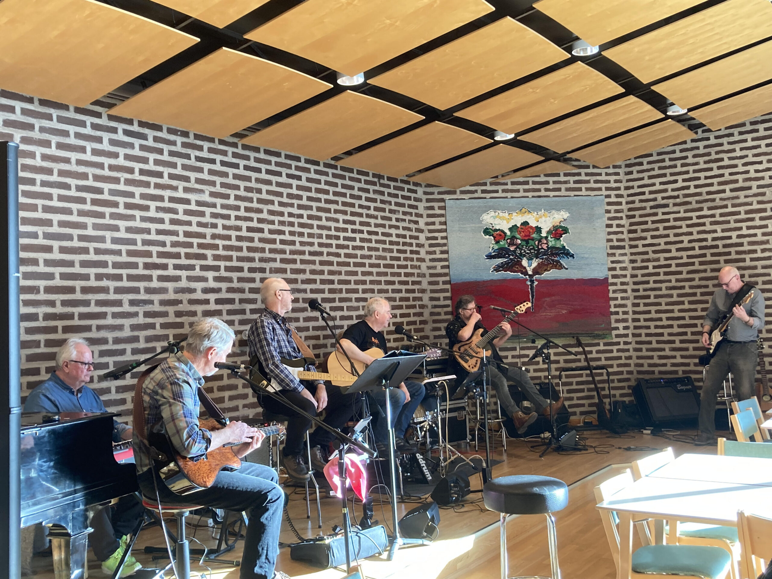 Dagens inbjudna gäster var hela sju spelglada musiker, Los Panchos, som tog i från tårna med ett antal rock- och countryrocklåtar från publikens ungdom på 1960-70-talet. Här var det bara att koppla ur hörapparaterna och stampa takten. Ett program som gav mersmak och vi hoppas kunna bjuda på det gänget flera gånger.